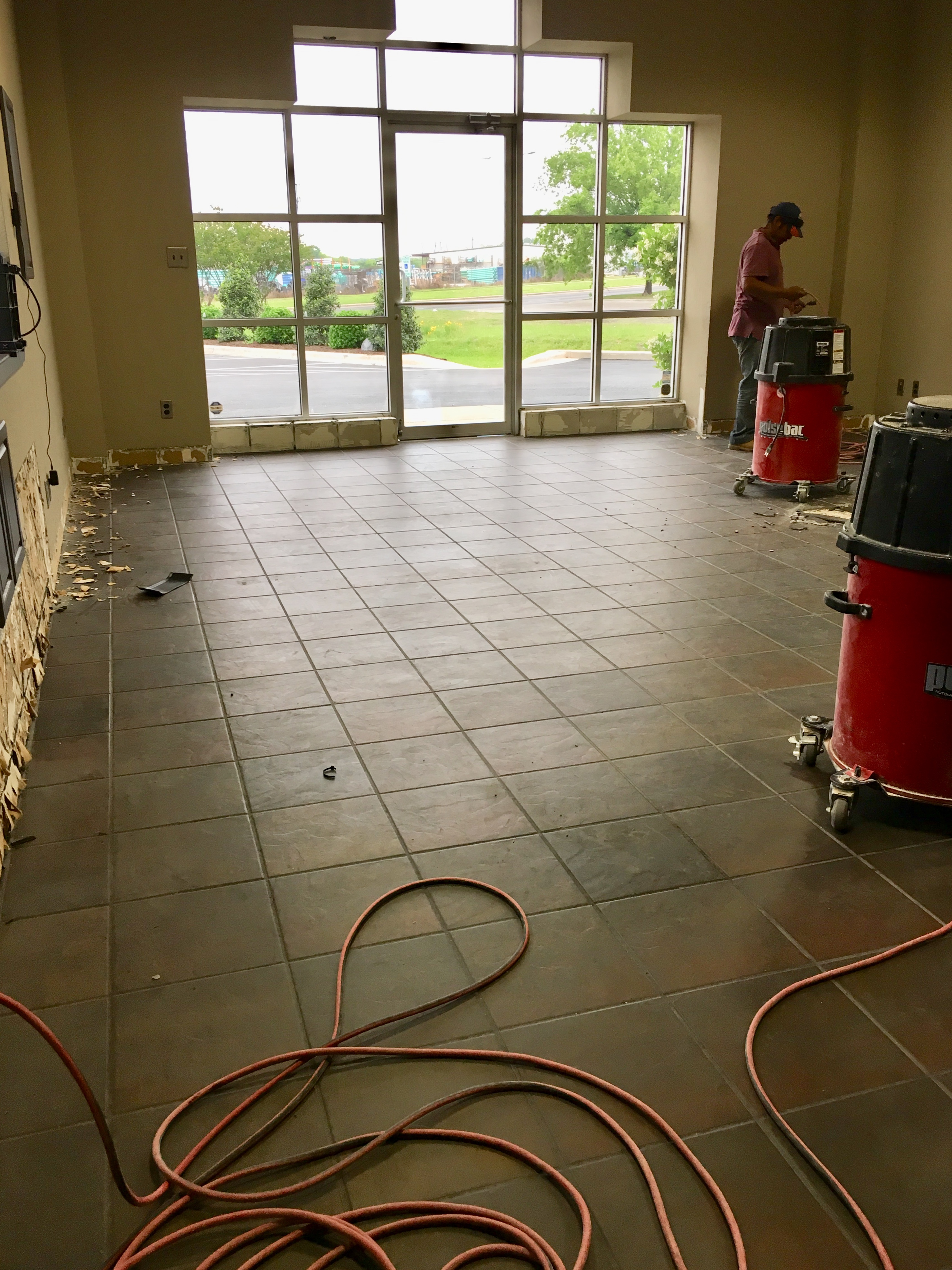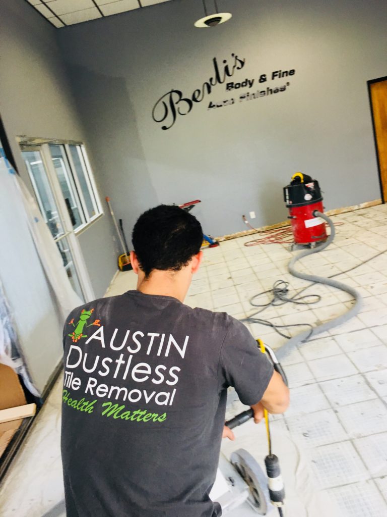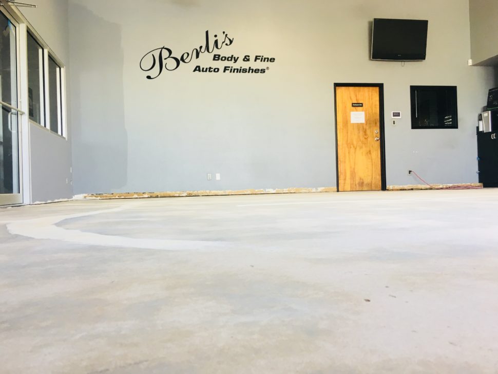 Another very happy day here at Austin Dustless. Berli’s Body & Fine Auto Finishes called us to remove the tile for them. They needed it to be clean and fast and here is what the owner said when he saw the finished floor: